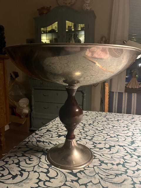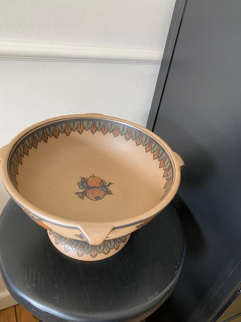 Stor opsats med blomster og guldkant fra Royal Copenhagen - detaljer i annoncen