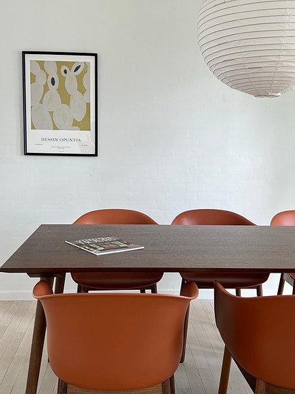 Stol i træ med orange betræk