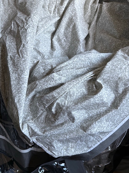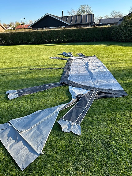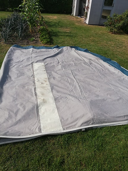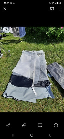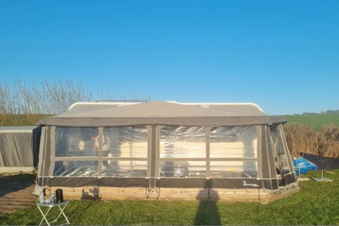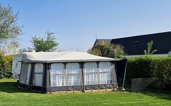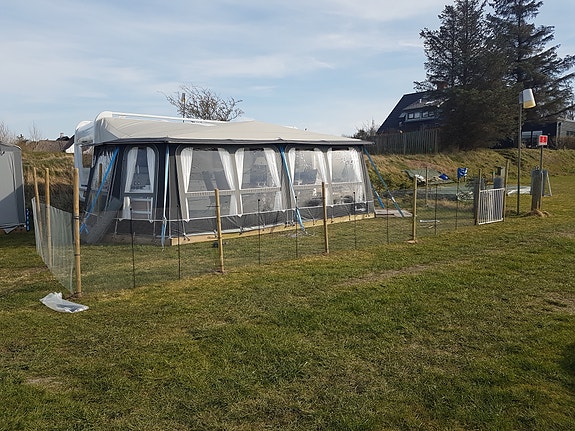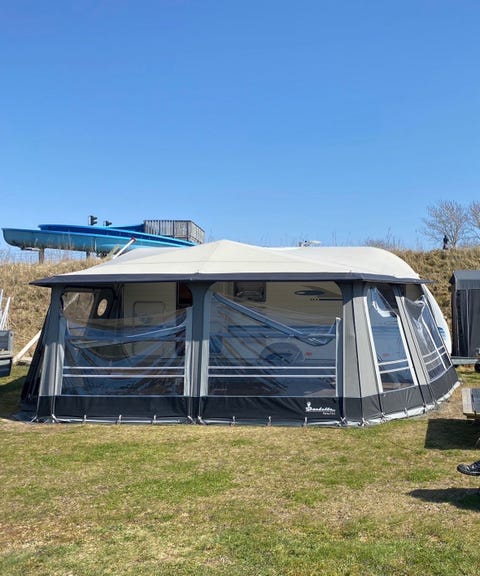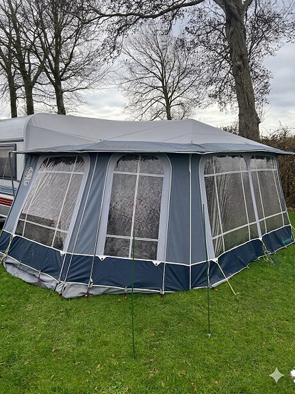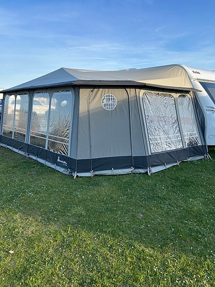 Campingvogns telt, opbevaringstelt, gulv og gulvtæppe.