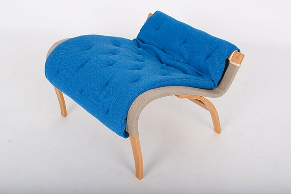 Bruno Mathsson Pernilla Lænestol med Fodskammel i Lys Træ og Beige Polstring