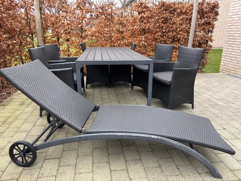 Liggestole med bord polyrattan sort