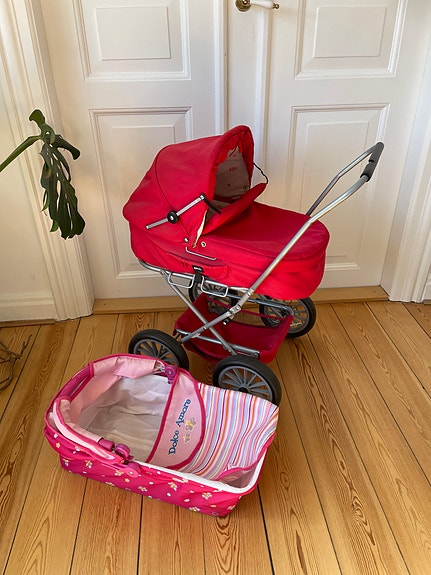 Fin rød dukkevogn