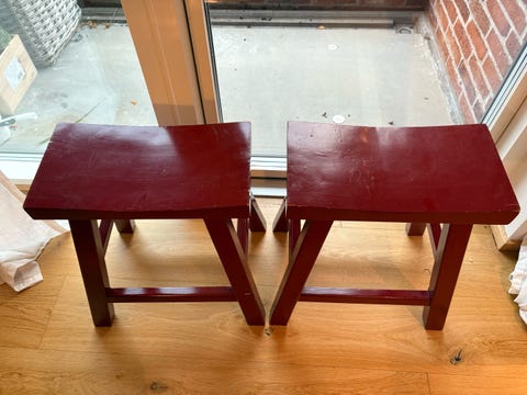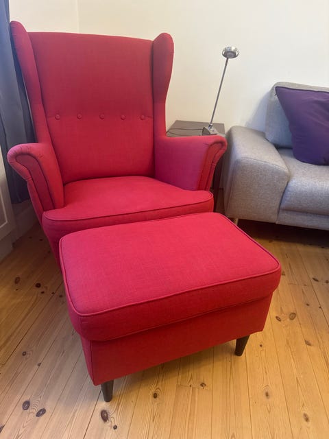 LÆDERLÆNESTOL RØD m. TIP OG SKAMMEL