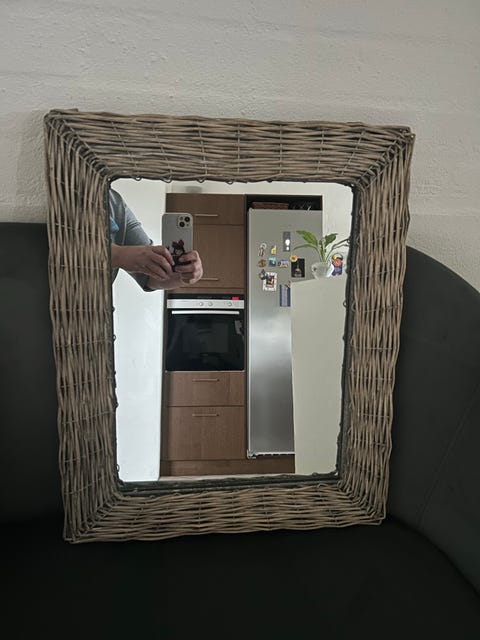 Spejl med rattan ramme