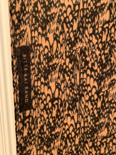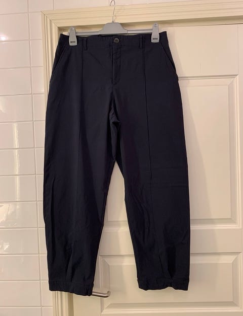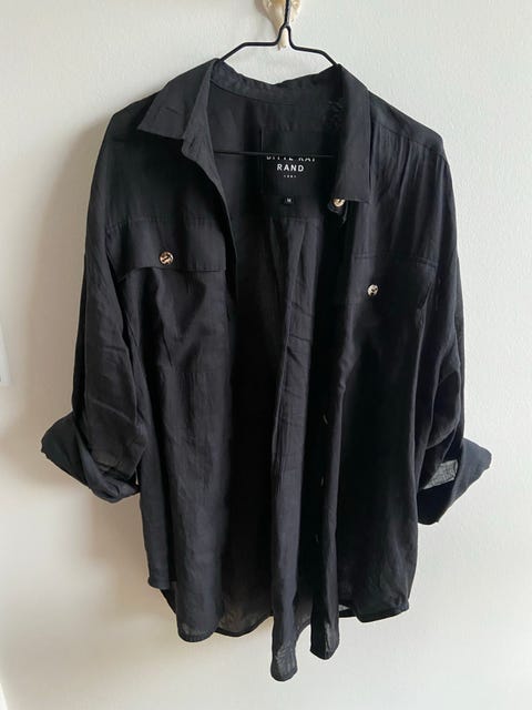 Den sorte er i str m og med to vejs lynlås , den brune er lang med knapper ,