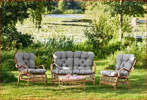 Rattan havemøbelsæt med grå hynder