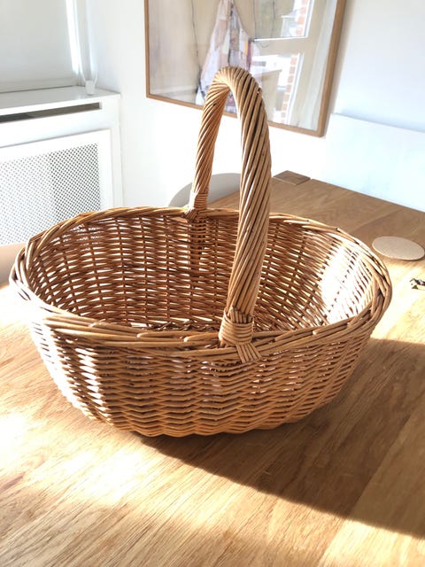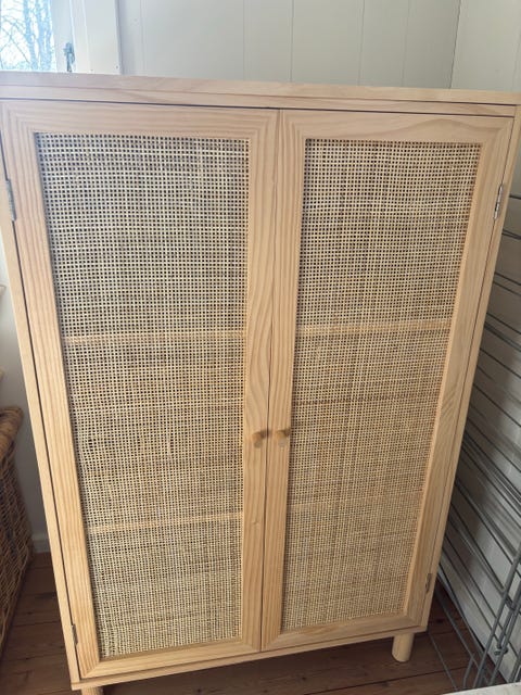 Hylde i rattan med beholder