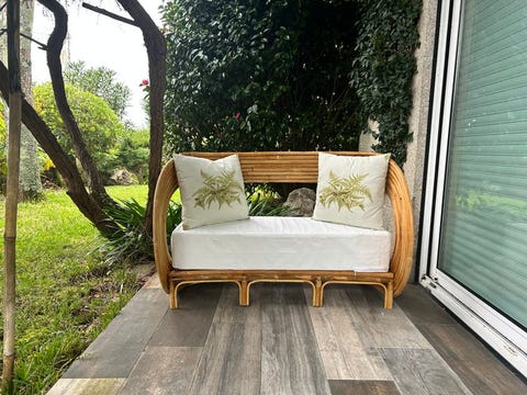 Rattan bænk med puder