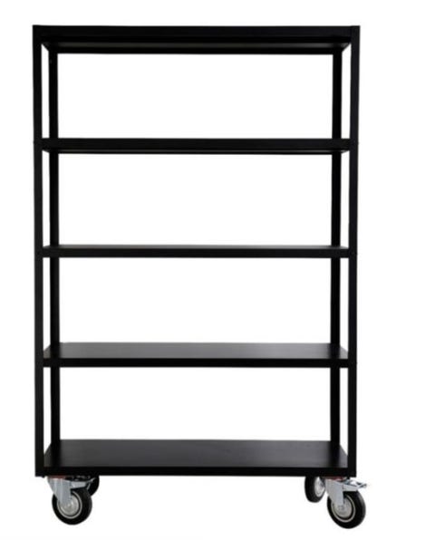 Sort stål reol på hjul