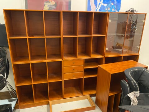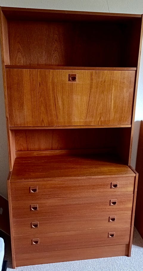 Teak reol med skab og skuffer