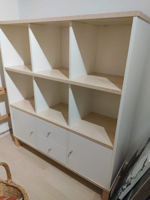 Reol med hylder og skuffer