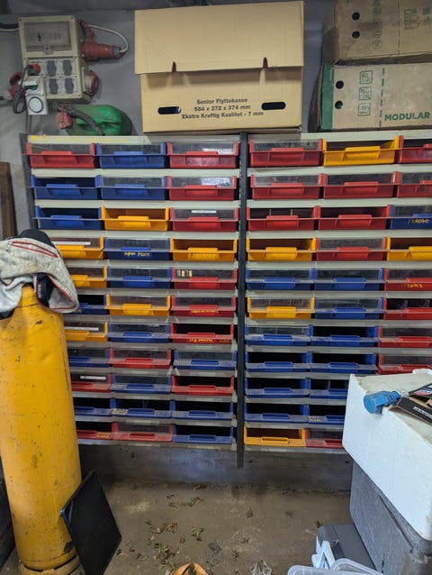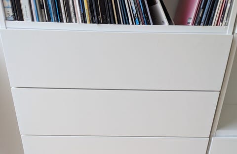 Reol med skuffer.