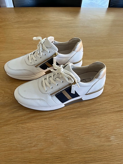 Gabor sneakers (RollingSoft) str 40 hvid med guld- og mørkeblå detaljer