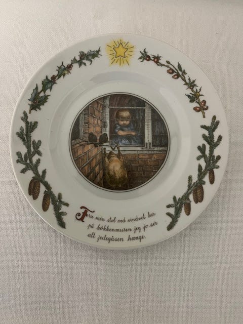 SØGER. Royal Copenhagen Juleplatte Porcelæn Tallerken med Julemotiv Peters Jul