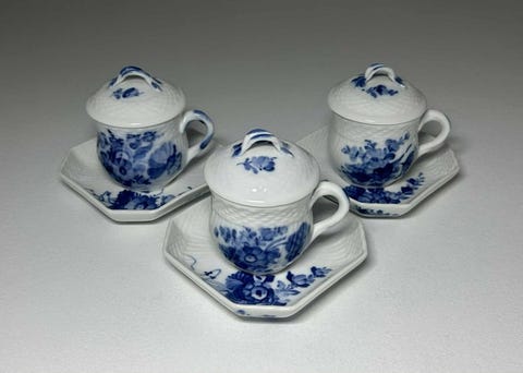 Royal Copenhagen - Kop (3) - Blue Flower 10/1542 and 10/1674 - Porcelæn - Sæt...