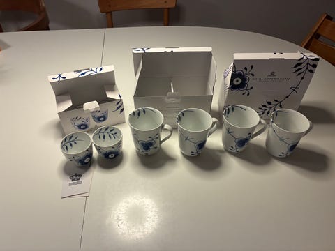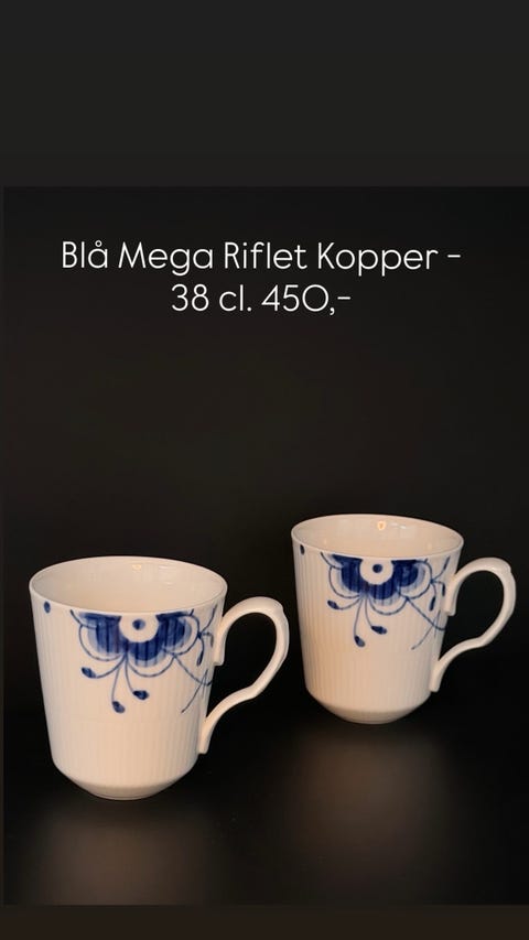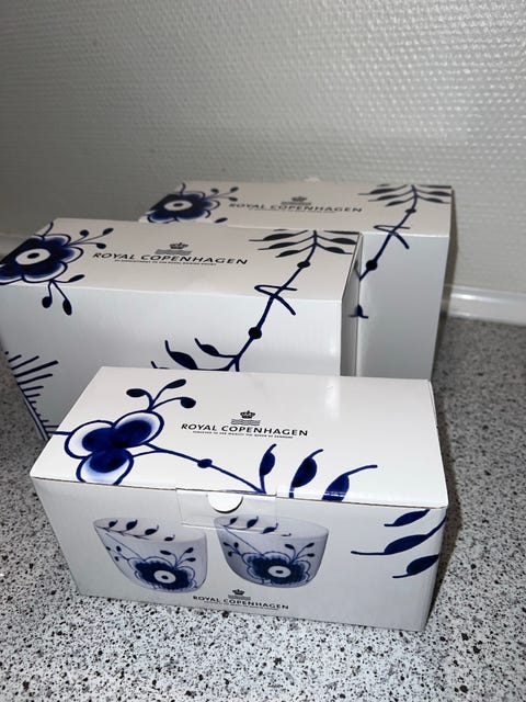 Royal Copenhagen Blue Fluted Mega Glas Sæt 2 stk x 2 + 2 stk. 20 cl kopper