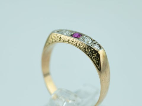 Forgyldt ring med rubin