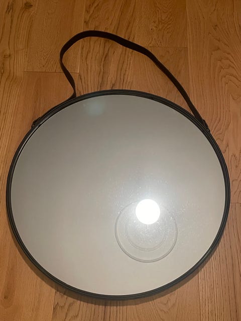 Rundt spejl med læderrem