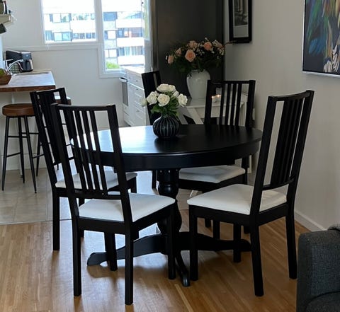Sort rundt spisebord