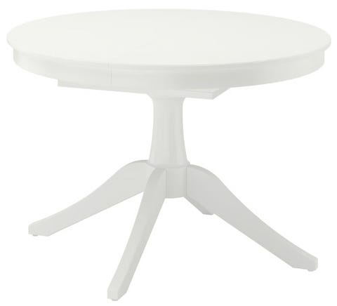Hvid rundt spisebord med udtræk