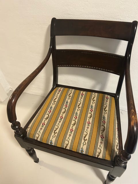 Hans Olsen Frem Røjle 1950 , Lænestol Sort skal med Teak Træramme , sæde skai ,