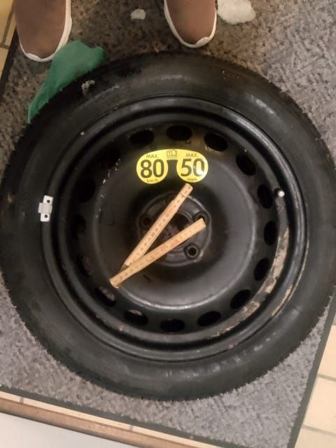 Reservedæk på fælg.