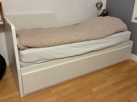 Seng med udtræk og skuffer