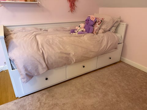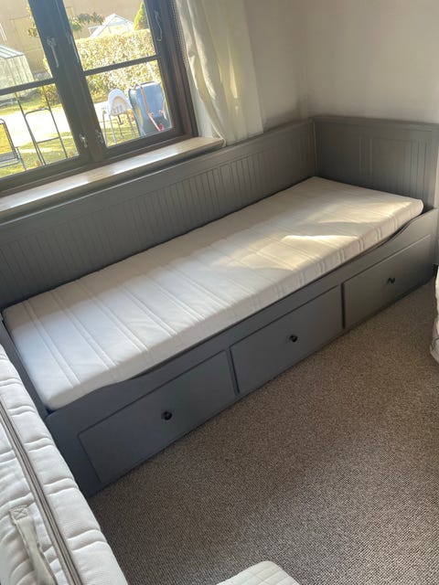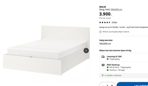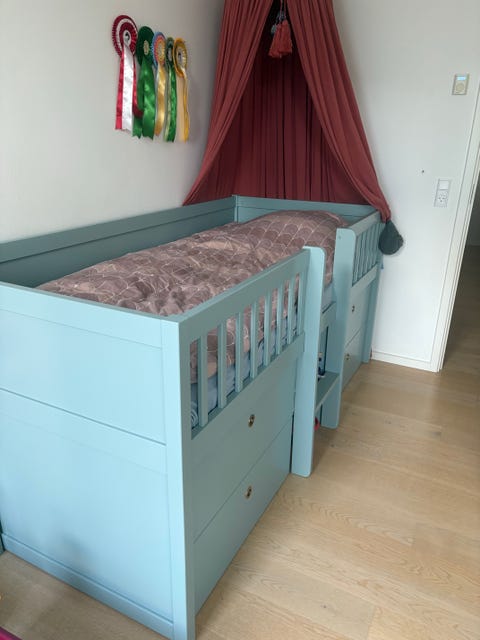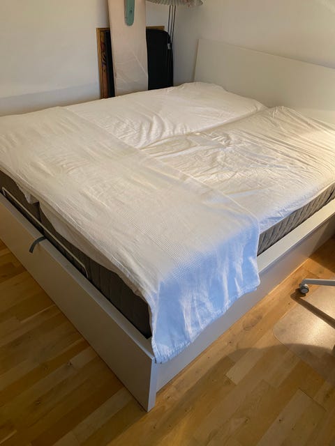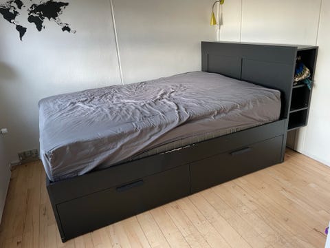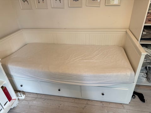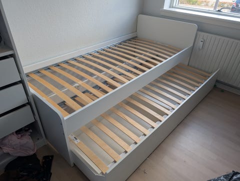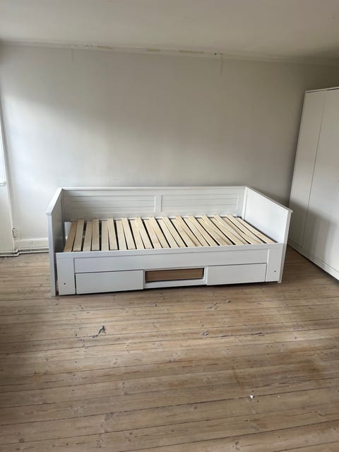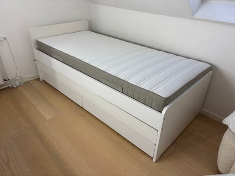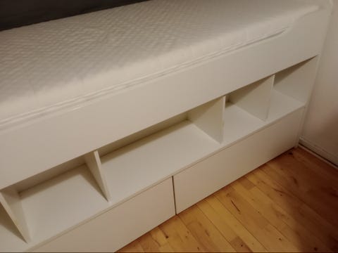 Næsten ubrugt seng med opbevaring