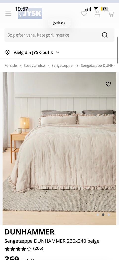 Sengetæppe og tre puder
