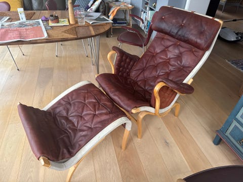 Læderlænestole og skammel