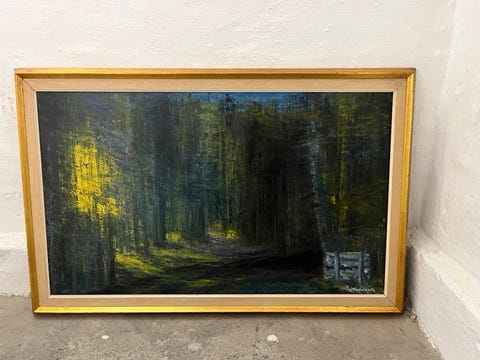 Oliemaleri med skov motiv