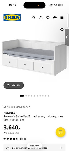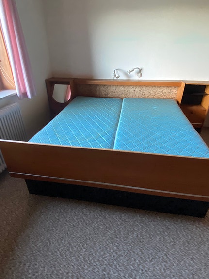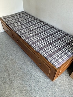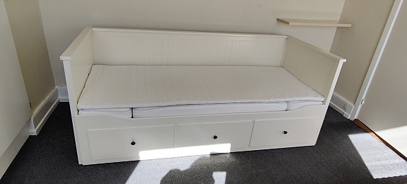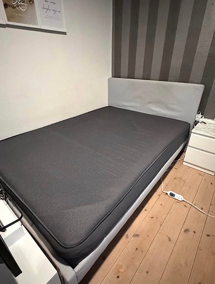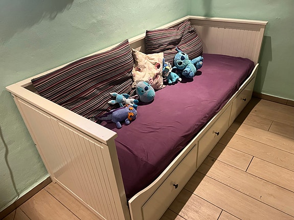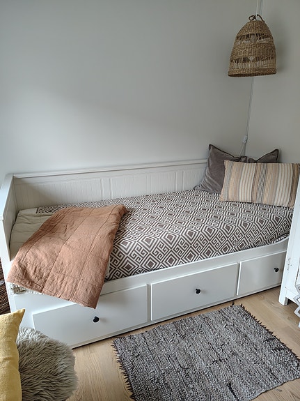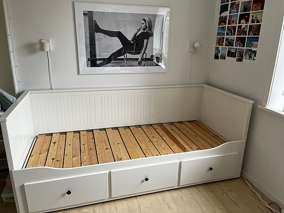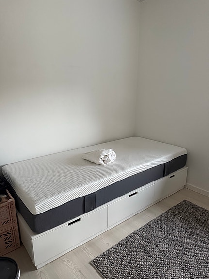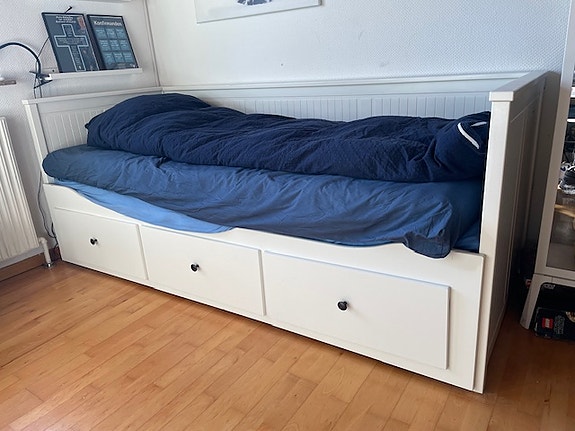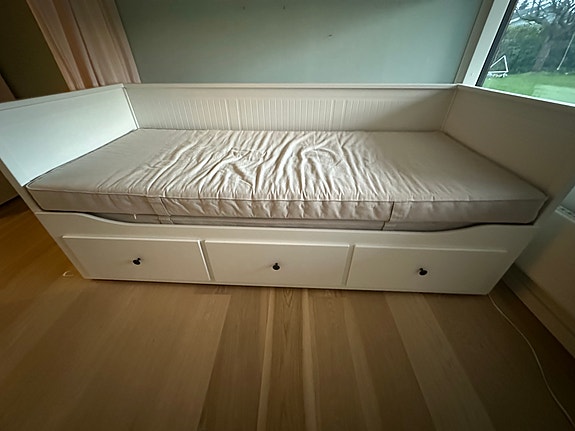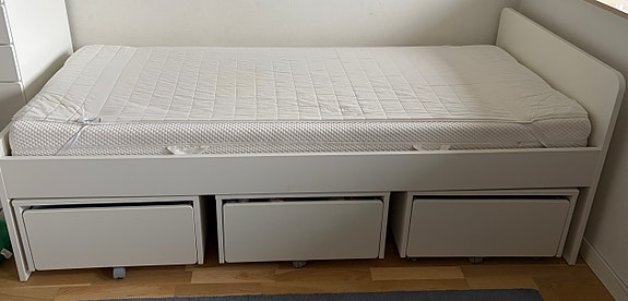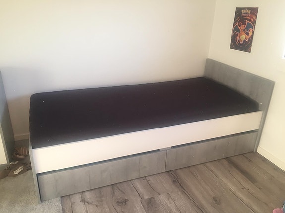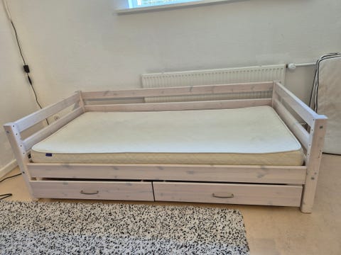 Seng med skuffer og madras