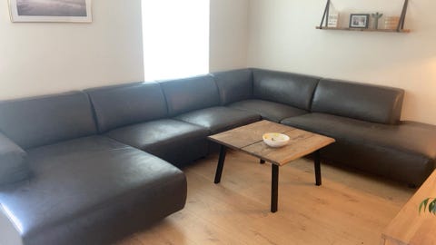 Grå u formet venstrevendt sofa