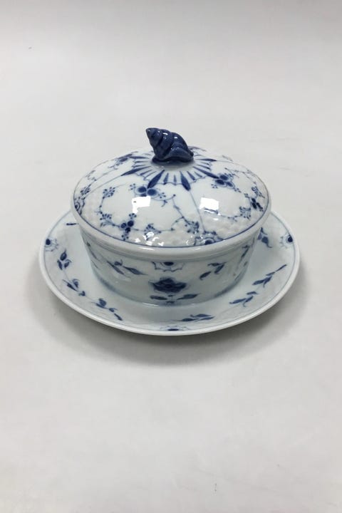 Royal Copenhagen blå Tranquebar smørkrukke med låg og fast underfad. Nr. 11/1263