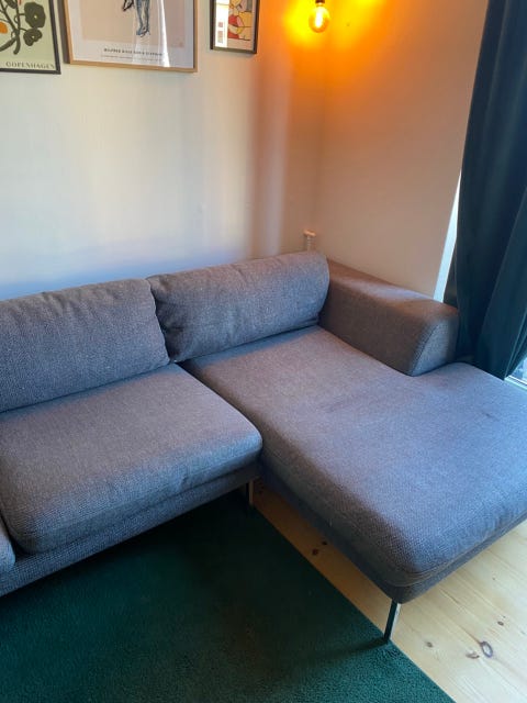 Grå sofa med chaiselong