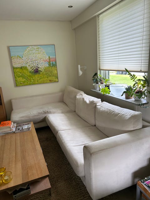 Bortgives , Sofa med chaiselong
