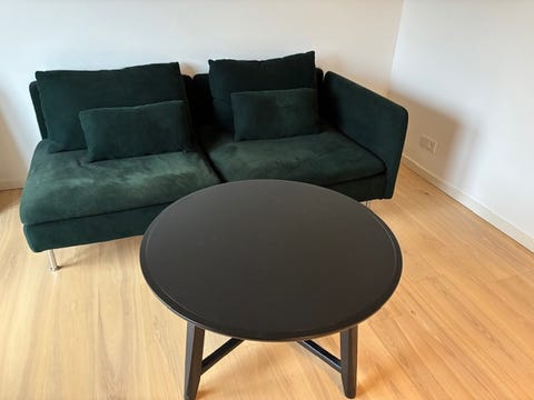 Fin, blå sofa med chaiselong
