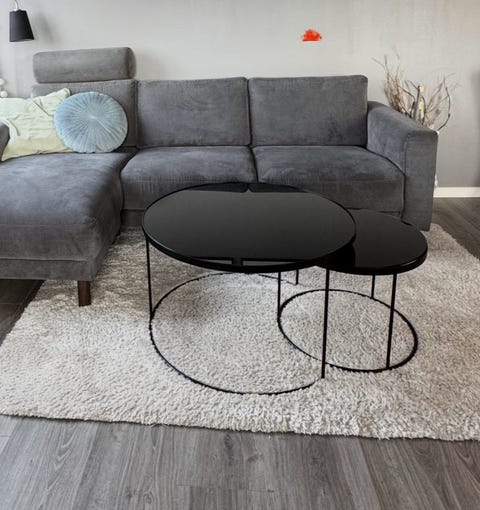 Sort to-delt glas sofabord