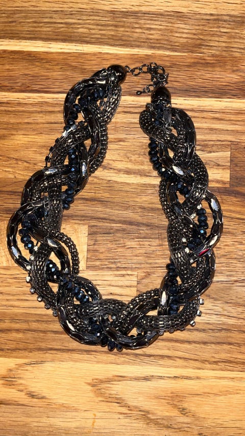 Smuk vintage halskæde fra midten af 2000’erne – flettet design med sorte perler