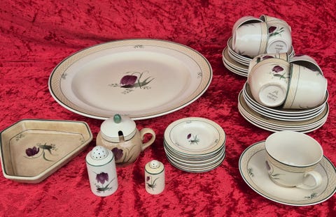 Smukt spisestel fra København Porcellains Maleri – komplet sæt til 12 personer