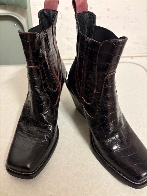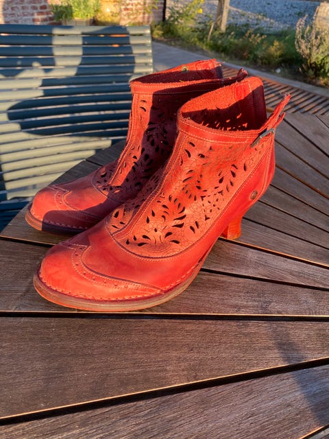 Støvlet i rødt skind