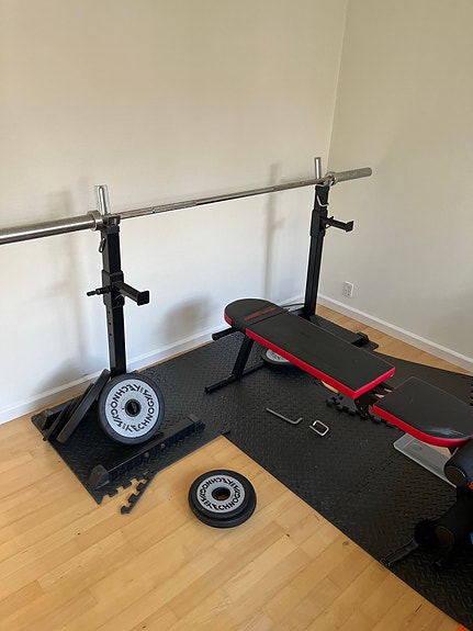 Squat rack med justerbar bænk