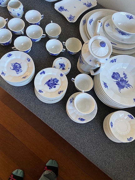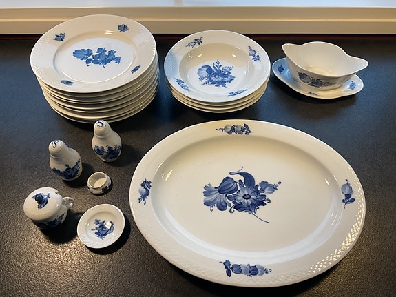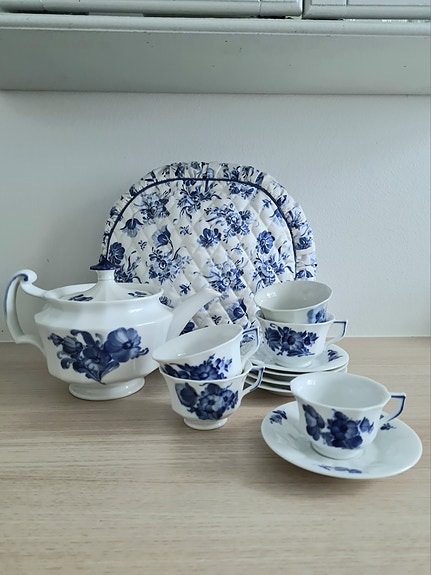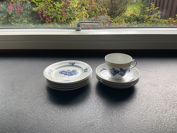 Royal Copenhagen Blå Blomst Riflet kaffekopper med underkopper porcelæn blå/hvid