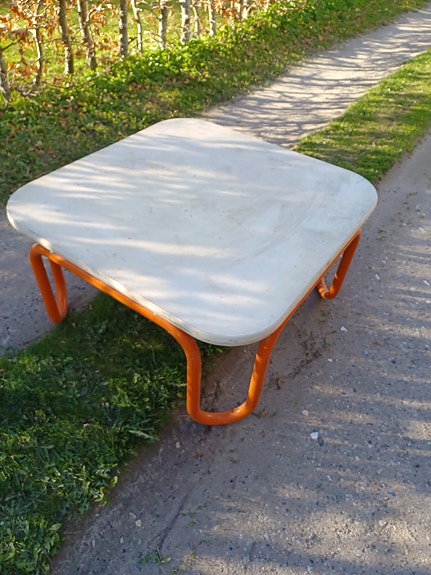 Fedt retro sofabord / børnebord med orange stel