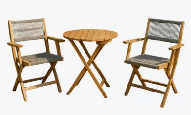 Havecafé-sæt med rundt klapbord og 2 stole i træ