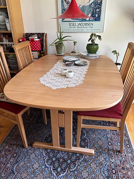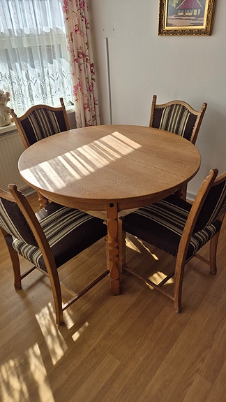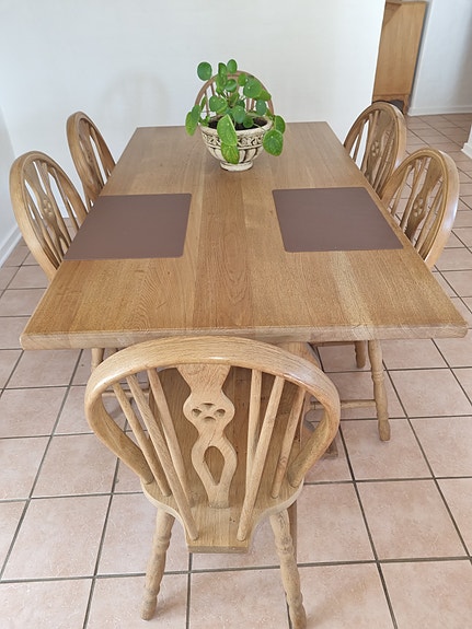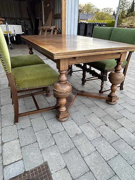 Massivt ubehandlet Egetræs Spisebords sæt med hjørnebænk og 4 stole