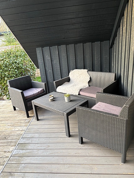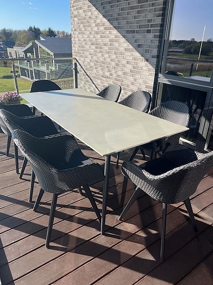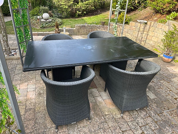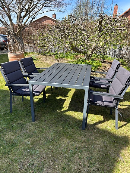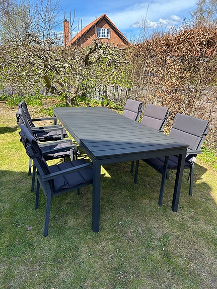 Havebord med 6 stole i sort non-wood (incl. hynder)