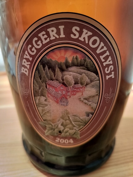 Stor brun flaske i glas