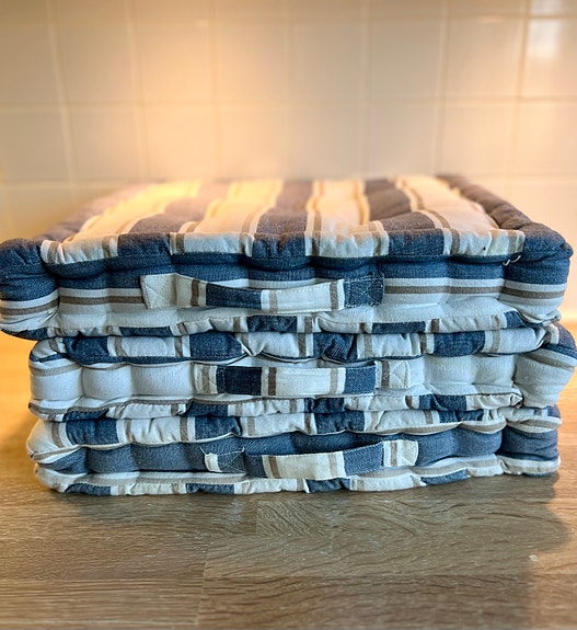 Træ bænk med hynde
