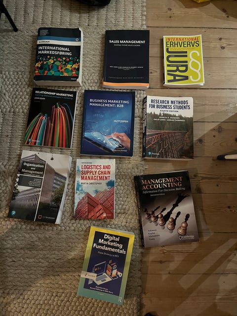 Samling af studiebøger fra jurastudiet